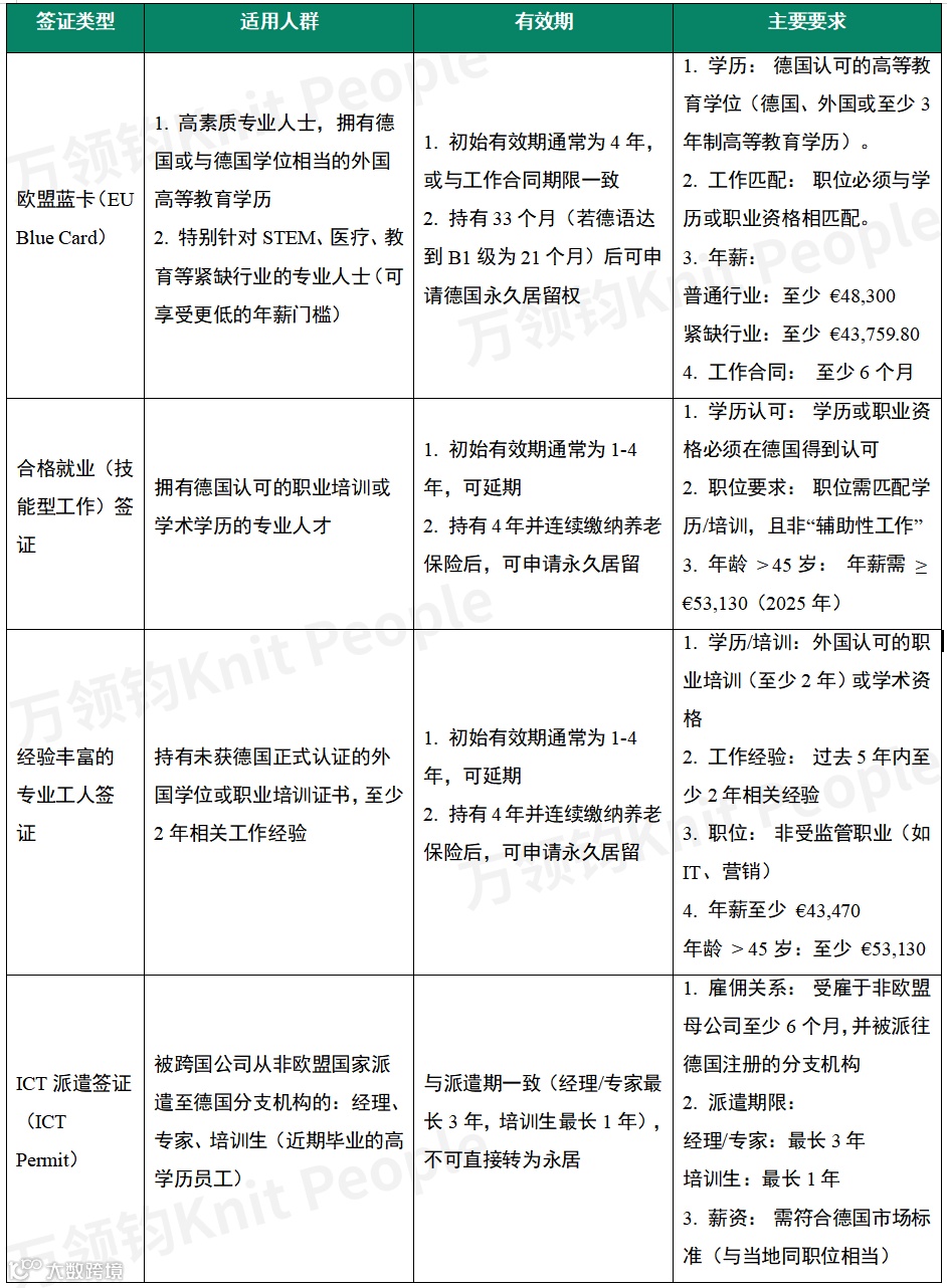 德国常见工签类型