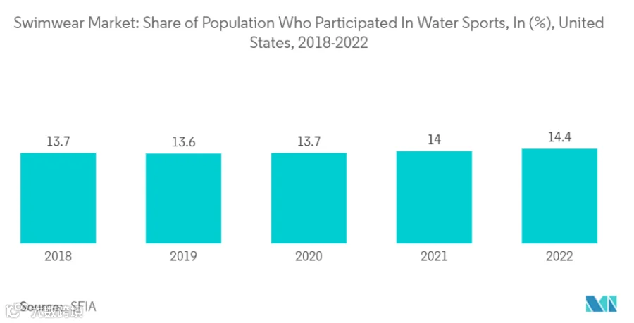 体育活动的重要性,特别是出于健康原因,以及越来越多的国际体育赛事正在鼓励人们参与体育和娱乐活动。参与健身和水上运动的人数增加,使得玩家可以推出适合游泳和其他水上运动活动的优雅舒适的泳装。由于游泳的好处,许多人倾向于选择这项活动作为健身方式。