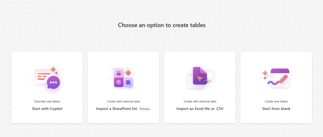 在 Copilot 的协助下,系统会根据您上传的文件自动生成一个 Dataverse 表。如果您的 Excel 文件中已经包含了预设格式的表格,这些格式将被用来自动定义列的数据类型。