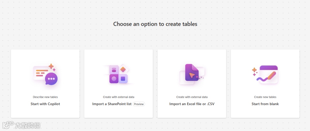 打开 Power Apps 门户,找到“基于数据构建应用”的向导。