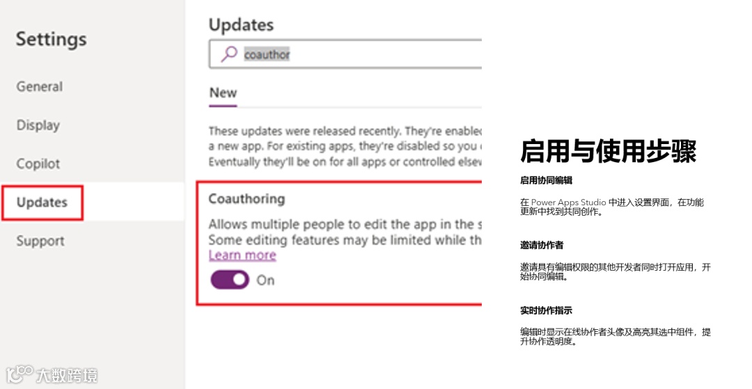 我们在这里找到一个叫 “Coauthoring” 共同创作 的开关,把它打开 。 -