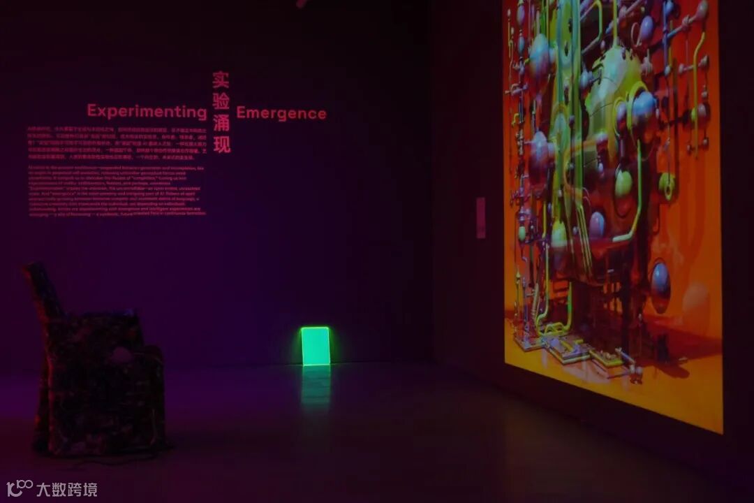 “实验涌现”板块的“实验”,意指不可知不可控的开放状态;“涌现”则是AI最迷人之处——一种在庞大算力与巨型语言残骸之间意外生出的灵光。作为“未来学研究中心”持续研究计划的一部分,本展区集中呈现了多位研究员的实验性成果,包括姚大钧的《战国百家》、邵立昊的《自在温柔之河》等。
