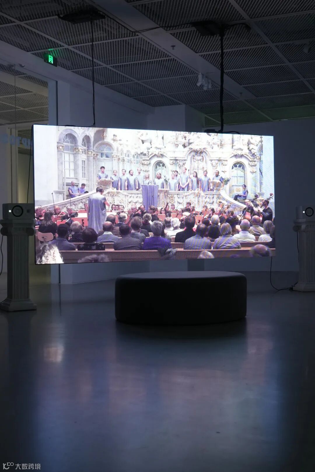 “言辞地景”板块中,Christian von Borries的影像作品,呈现了全球首部由机器学习模型自动生成并现场演奏的交响乐;施政《泪光》中由AI生成的气象图像,都被镶嵌在由机器所生成的一段自循环的冰块融化过程里……在当代AI文化中,“提示词” (prompt) 已成为具有高度识别性的关键概念——它不仅是生成的起点,更是人类思维的投影媒介。