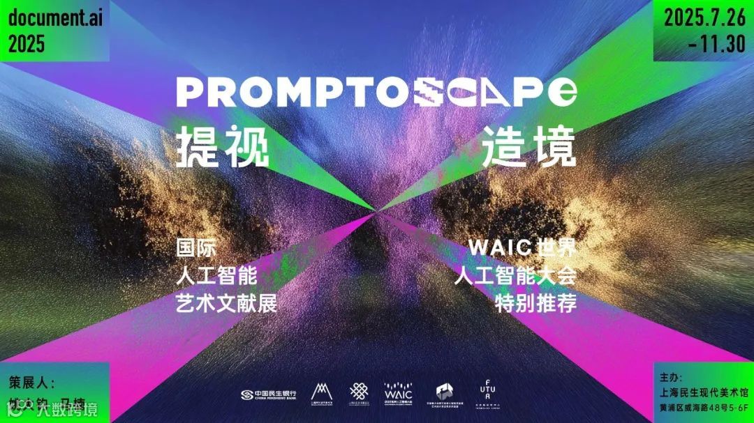 2025年7月26日,WAIC 2025开幕当天,上海民生现代美术馆隆重推出全新展览——“提视造境 Promptoscape:国际人工智能艺术文献展”。这场由姚大钧、马楠联合策展的国际大展,汇集了来自全球十个国家和地区的20多位AI艺术家和艺术团体的31件/组作品,以“一切,正在生成中…”为开篇宣言,展示了AI如何通过提示词(Prompt)这一全新创作语言,生成(Generate)出前所未有的艺术景观(Scape)。