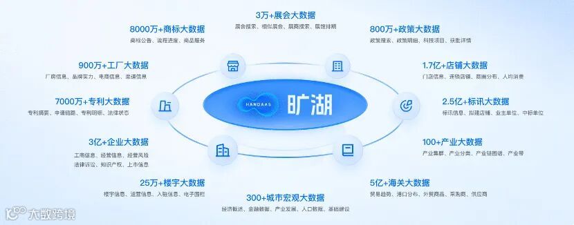 在数据规模与覆盖维度上,「旷湖」平台自研的分布式采集入库系统,能够对全网3.8亿+企业、25万+楼宇、30亿+商品等海量数据进行建模采集更新,日更新量达数百亿条字段记录,确保数据的实时性与全面性。