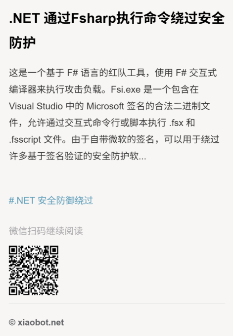 本文内容部分节选自小报童《.NET 通过Fsharp执行命令绕过安全防护》,完整的文章内容请加入小报童后订阅查看。现在限时只需69元,永久买断!目前已有400+位朋友抢先预定,我们会长期更新,对.NET内网安全的朋友们请尽快订阅该报刊!
