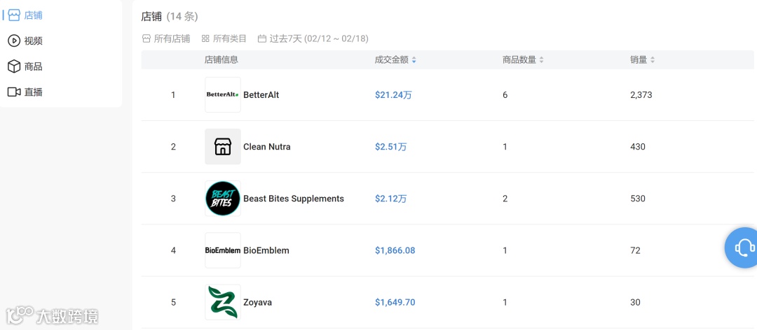 为了让用户更快速地定位近期优秀的商品、达人、店铺、直播和视频,我们新增了热卖榜单(6个维度),包括过去7天GMV排名前5的数据情况。这个榜单支持点击跳转到对应的详情页,以查看更多的数据维度。