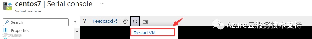 ###在Azure portal的“Serial console”处点击“Restart VM”重启
