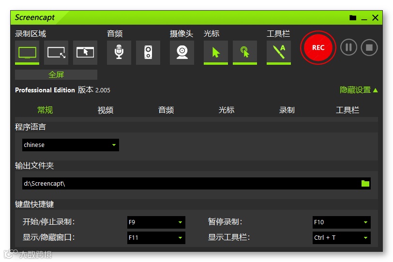 常规功能都有,就不多说了,最大的优势是录制出来的视频体积小、质量高。