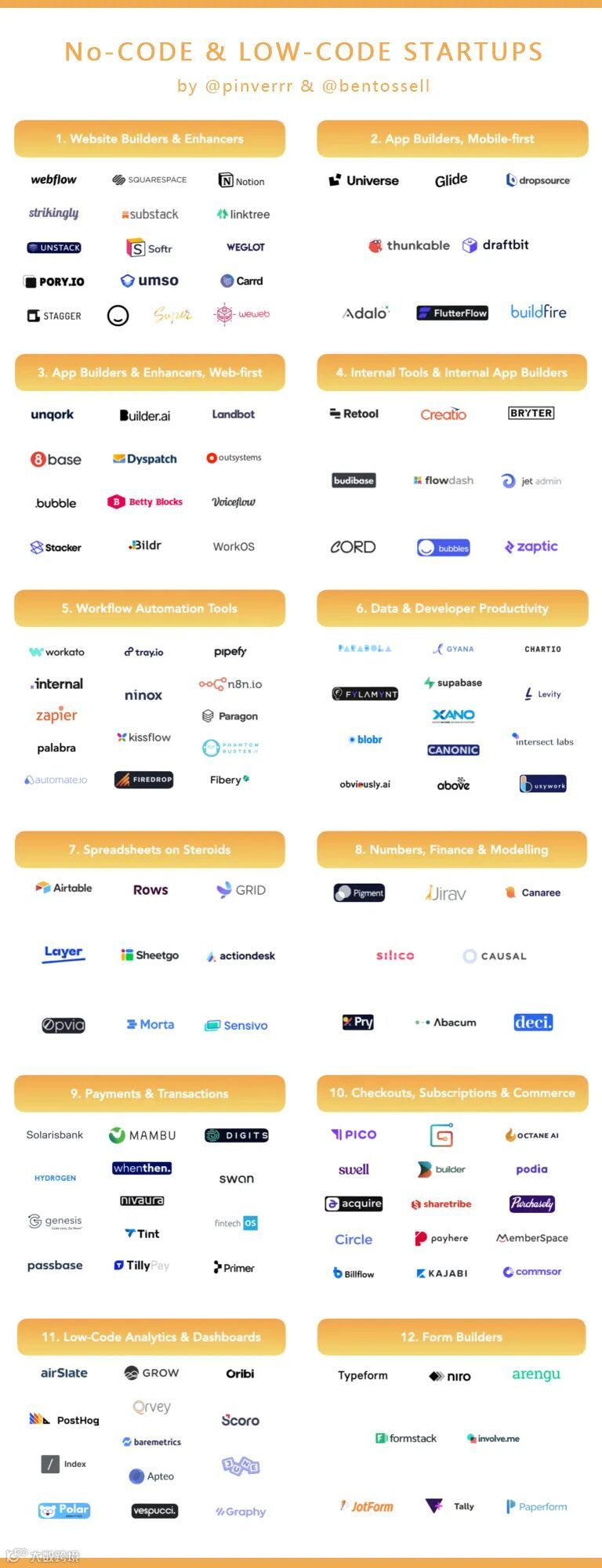 无代码/低代码的12个赛道