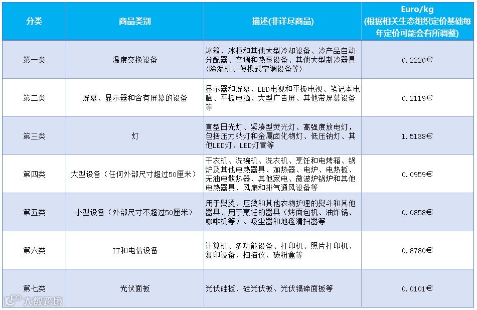 此次,阿里国际站暂不收取服务费,以下为平台公布的EPR代收代缴生态贡献费,卖家朋友们可根据表格内容进行参考,因篇幅问题,相关小类仅展示部分产品,如果您对自己产品的类别尚不清楚,可随时联系客服咨询。