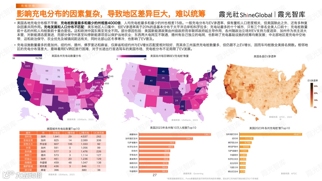 美国充电市场,呈现出了市场分布不均衡、公充可靠性差、充电不平权三大主要问题。