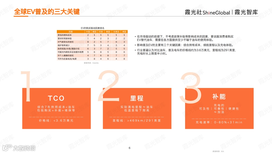 当前,影响普及EV的三个关键因素分别是:综合持有成本(TCO)、续航里程以及充电体验。行业认为,普及电车的价格线约为3.6万美元,里程线为291英里,充电时长上限是半小时。