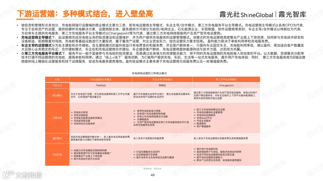 整体来看,欧盟关于充电基础设施的法案完备,各国都鼓励充电站投资,主要市场政策体系完善。当前欧洲充电市场百花齐放,共计有数百个大小充电网络运营商(CPO)和充电服务提供商(MSP),但其分布极为分散,前十名的CPO市场份额合计不足25%。