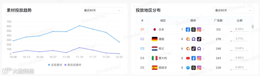 基于 GoodsFox 监控的投放数据,我们有以下发现: