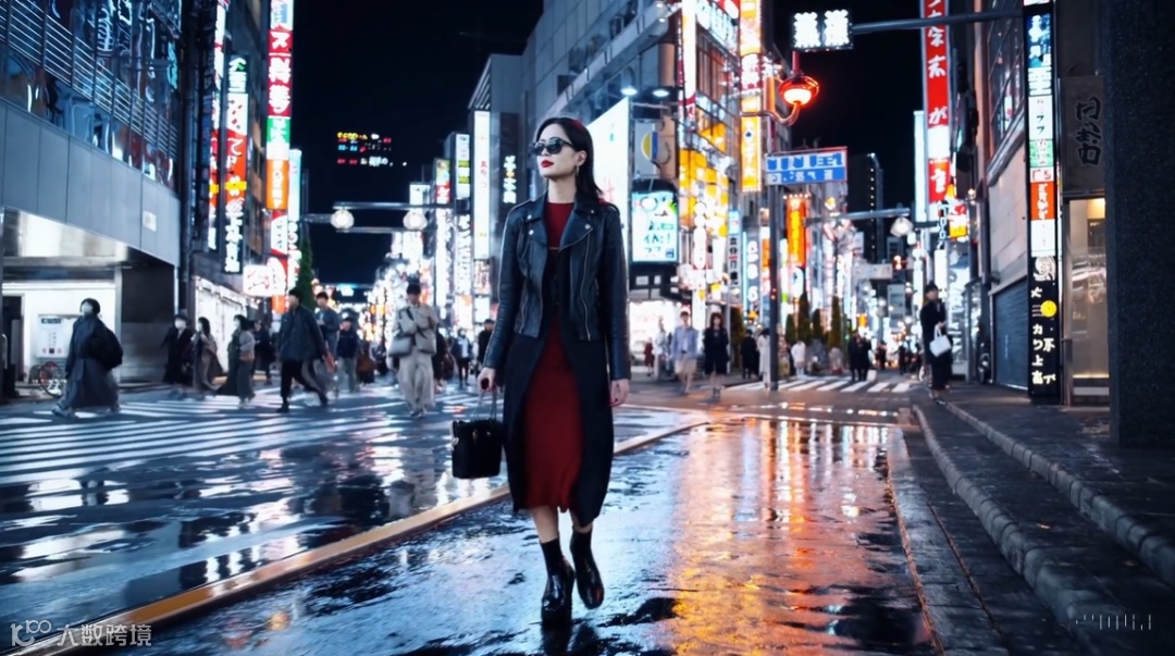 图源:OpenAI“提示:一位时尚女性走在充满温暖霓虹灯和动画城市标牌的东京街道上。她穿着黑色皮夹克、红色长裙和黑色靴子,拎着黑色钱包。她戴着太阳镜,涂着红色口红。她走路自信又随意。街道潮湿且反光,在彩色灯光的照射下形成镜面效果。许多行人走来走去。”(源于:OpenAI官网)