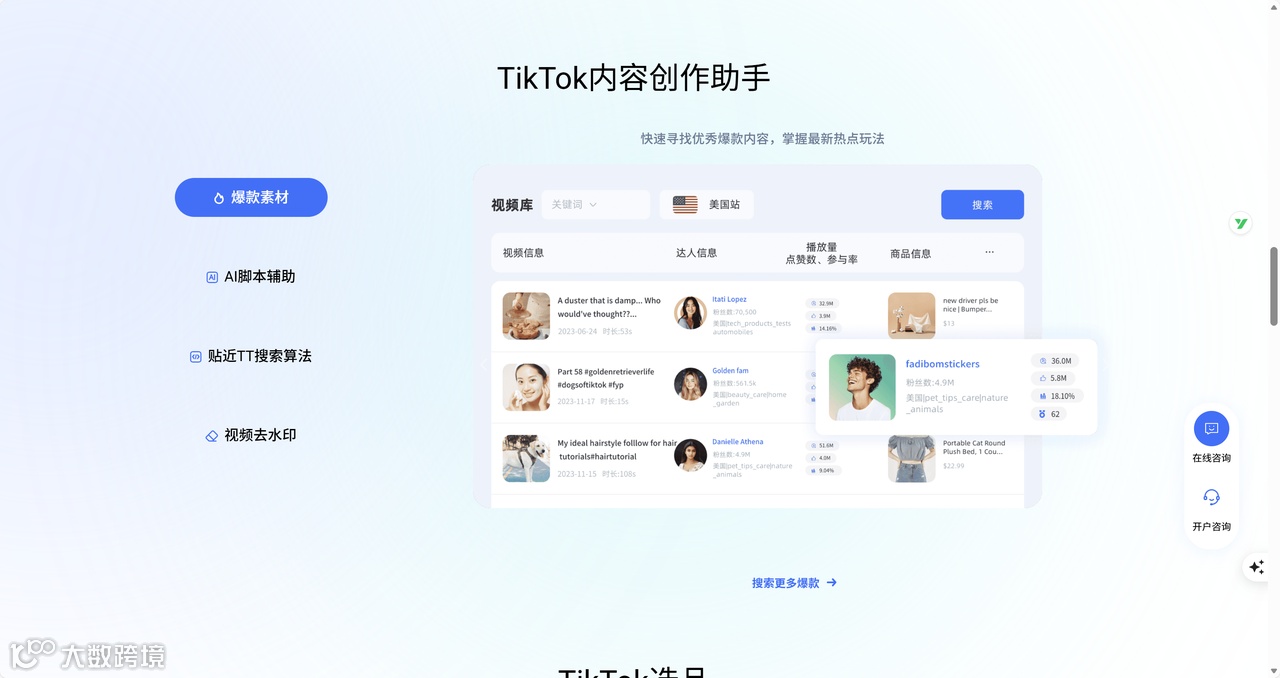 选品与趋势发现:追踪TikTok热门商品与内容趋势,为亚马逊选品提供前瞻洞察。