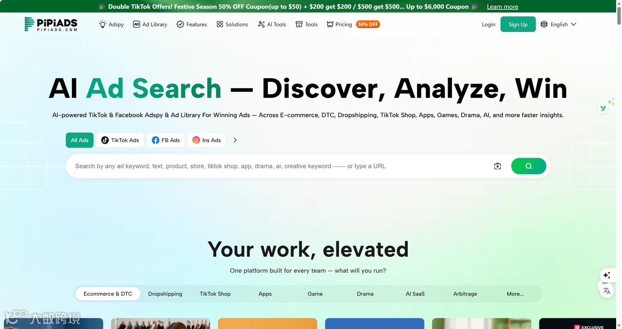 核心定位: PiPiADS 是一款专注于分析TikTok广告数据的工具,通过洞察竞争对手的广告策略,为选品和营销提供独特视角。