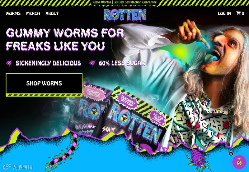 您还可以设计一组在品牌资产中使用的图形元素。这些可能是字符、曲线或纹理效果。Rotten Candy 品牌在其品牌中使用一致的图形元素,如带电条纹和颗粒纹理: