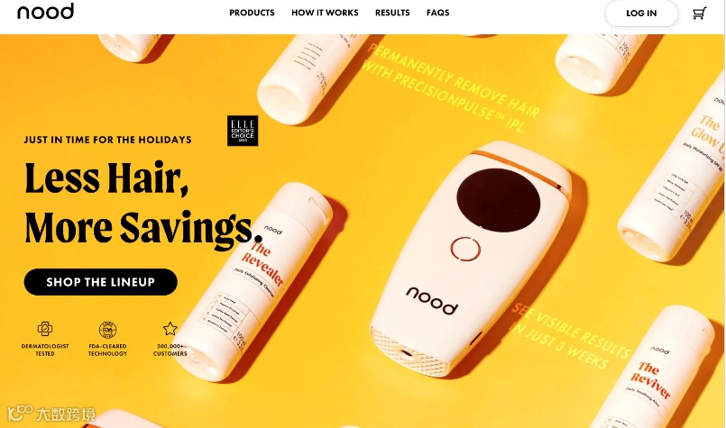 Nood 使用“nude”的替代拼写作为品牌名称——这是脱毛公司的恰当联想。