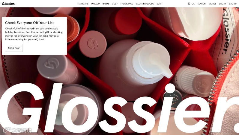 由于每种徽标类型都存在限制,因此您可以使用样式组合以及一些辅助徽标选项。美容品牌Glossier在其网站和包装上使用了一个简单的文字标志: