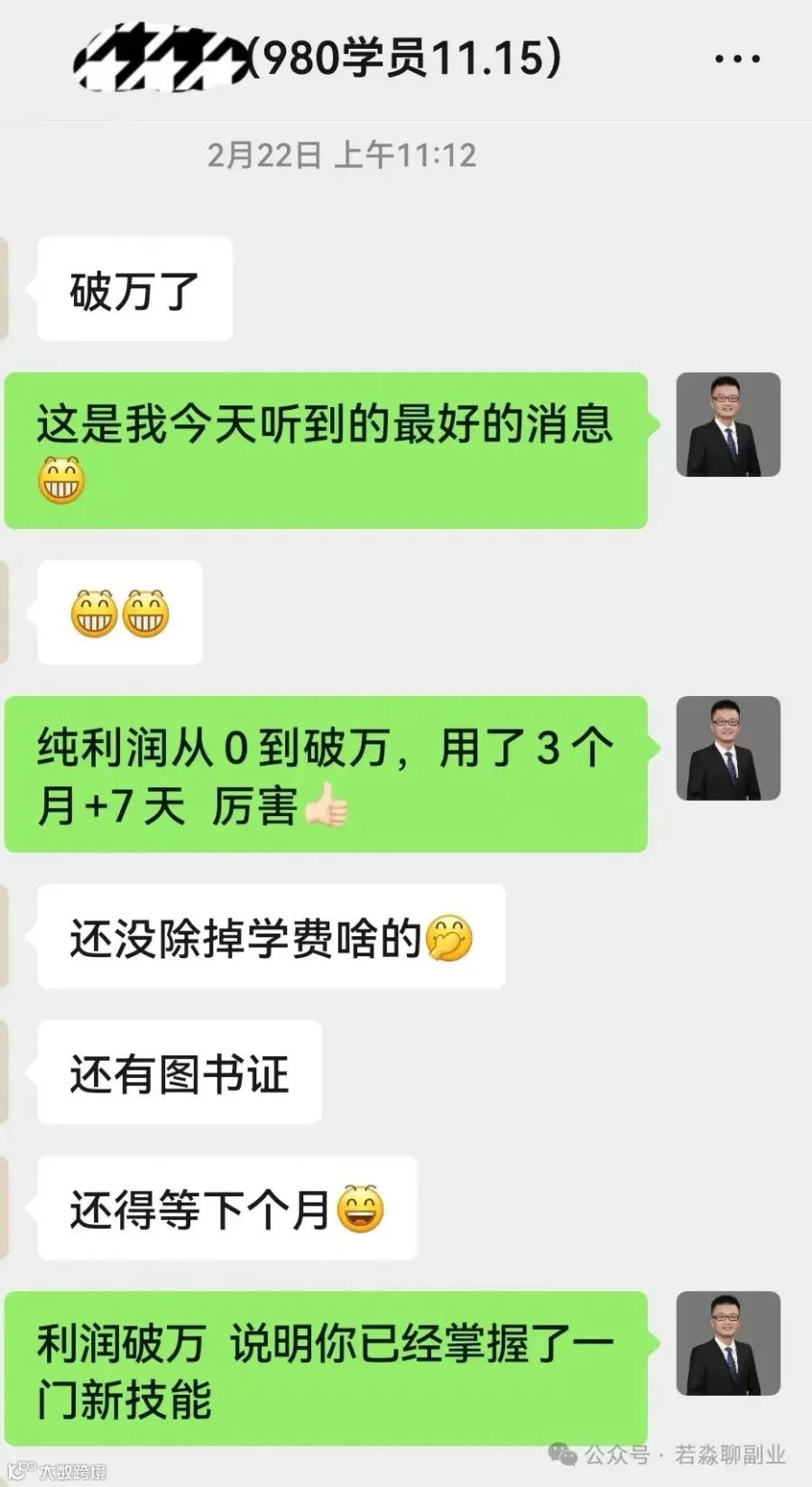 带教近20名学员,其中3人纯利润破万[7]。总结了大量店铺运营干货及最新策略,并撰写多篇实用文章。
