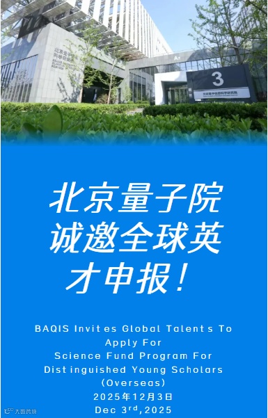 Beijing Academy of Quantum Information Sciences (hereinafter referred to as BAQIS) sincerely invites global talents to apply for Science Fund Program for Distinguished Young Scholars (Overseas)!