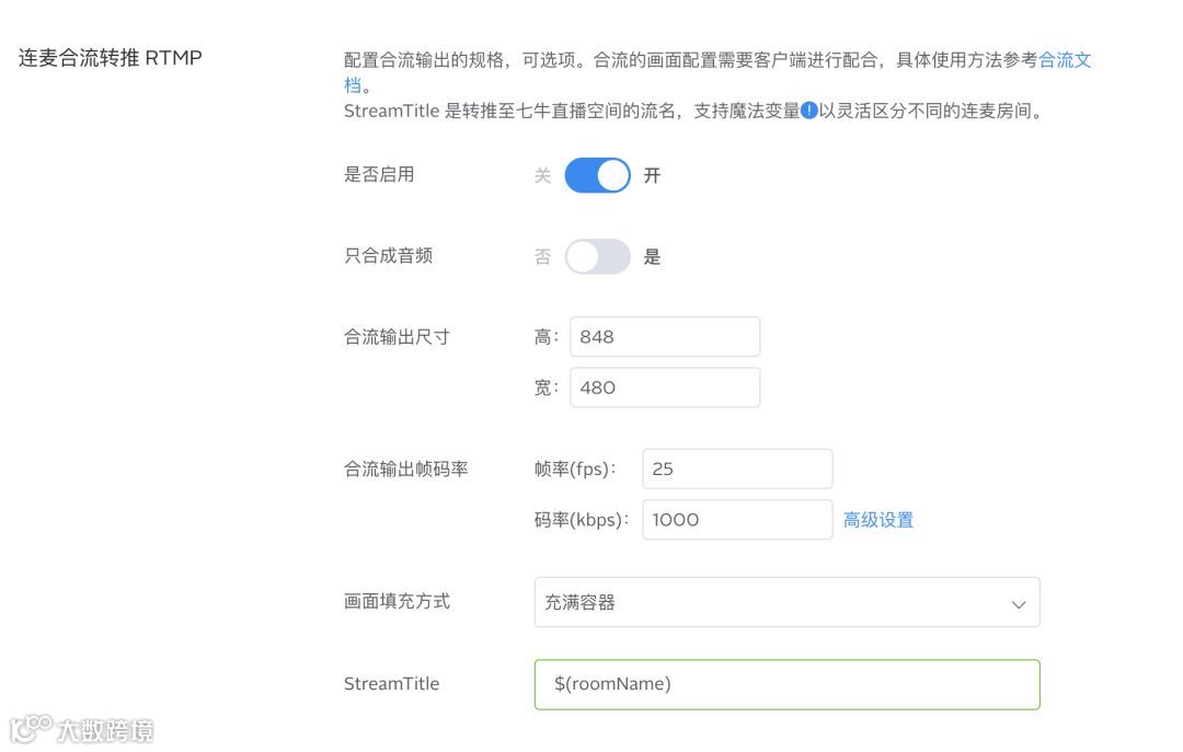 如果想推送到自定义的 RTMP 地址(不使用七牛直播云),也通过实时音视频云的后端 API 来配置(详细见文档)。