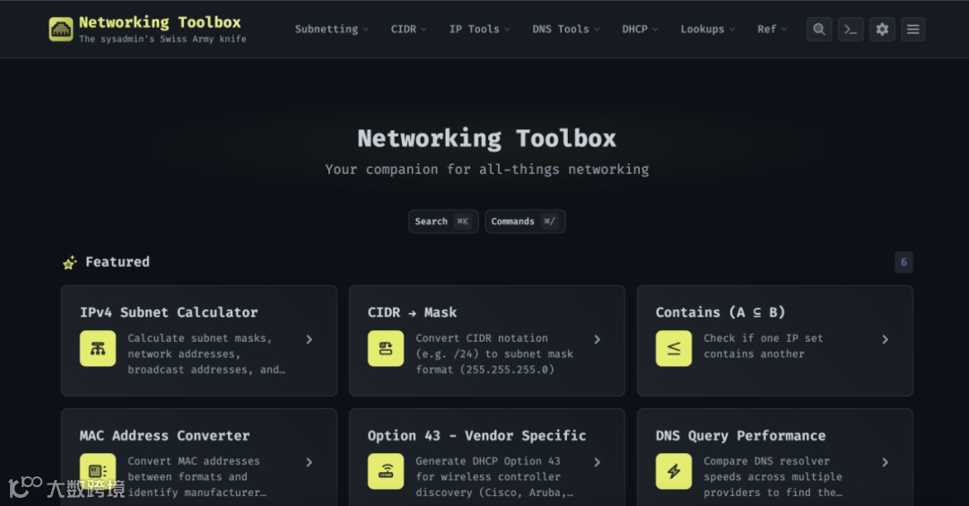 工具种类:提供100多个网络相关工具,涵盖转换、计算、诊断和验证服务器配置等功能。 -