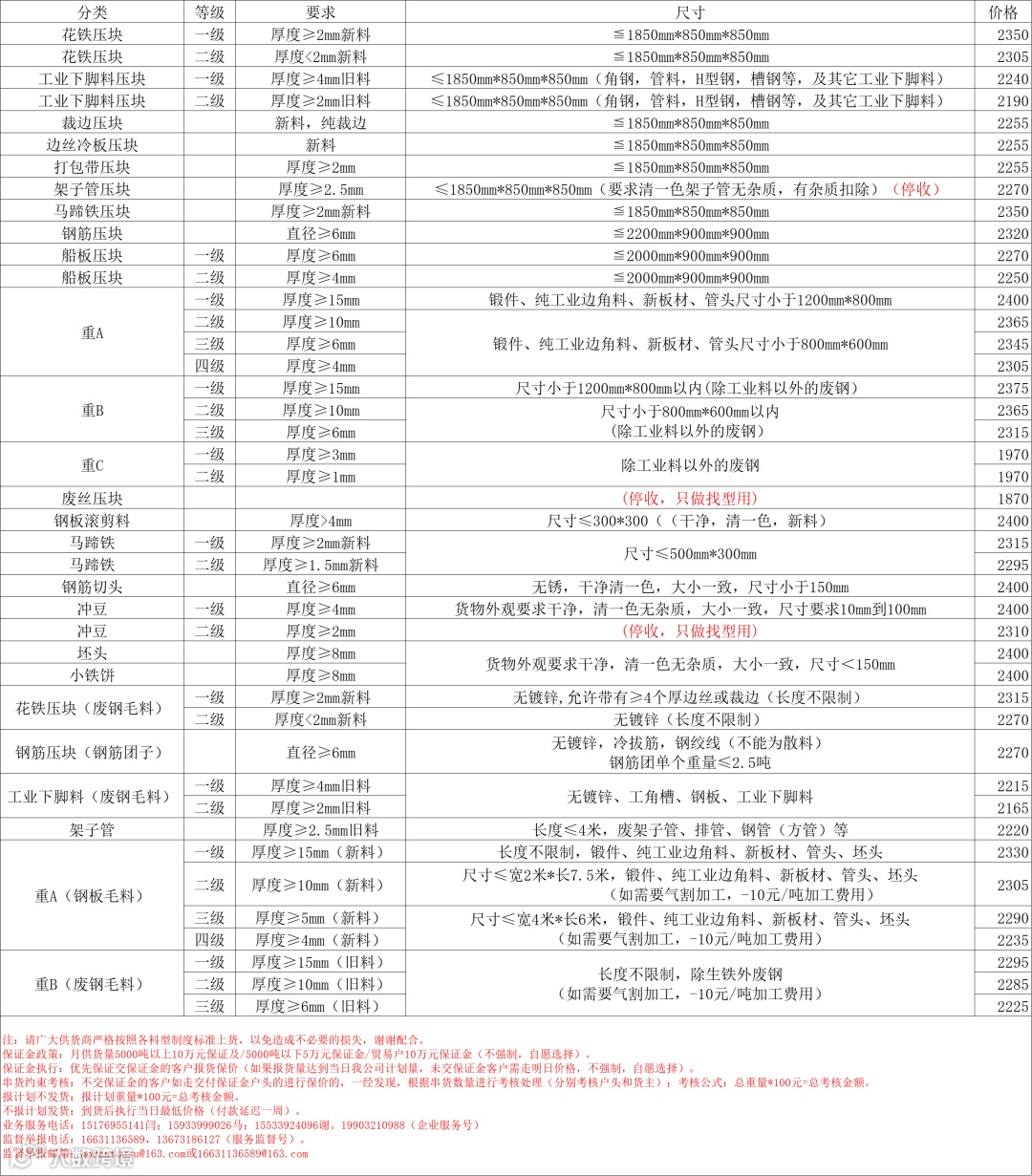 废钢采购定级标准2025年12月1日8:00执行(以报计划为准)