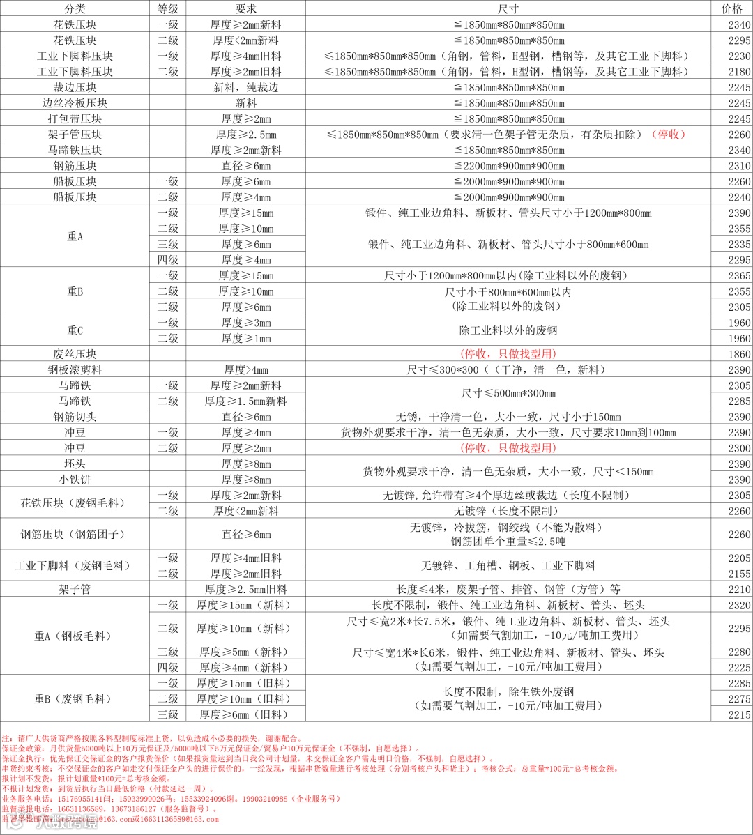 废钢采购定级标准2025年11月30日8:00执行(以报计划为准)
