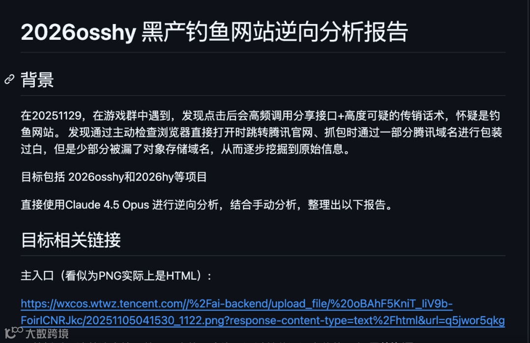 跳转到伪装成 PNG 的 HTML 页面(托管在腾讯云 COS 域名下)。 -