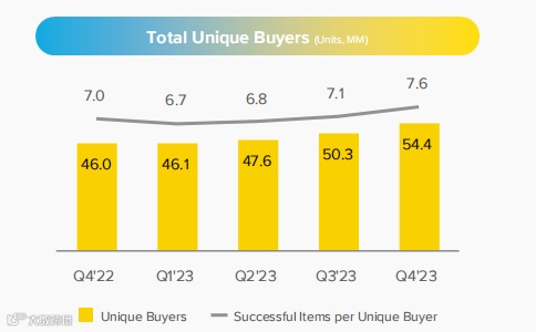 23年。2023年第四季度成为了另一个增长和利润双丰收的季度。总收入达到了42.61亿美元,同比增长幅度高达42%,其中电商业务净收入增长至24亿美元,同比增长48.1%,为自2022年第三季度以来的最高成长速度。
