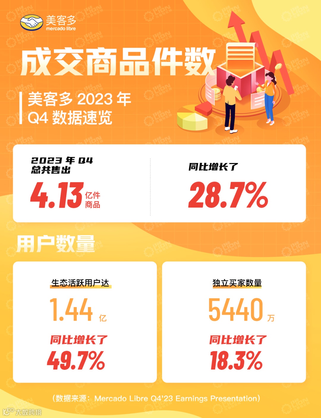 ■美客多生态活跃用户达 1.44 亿,同比增长 49.7%↗