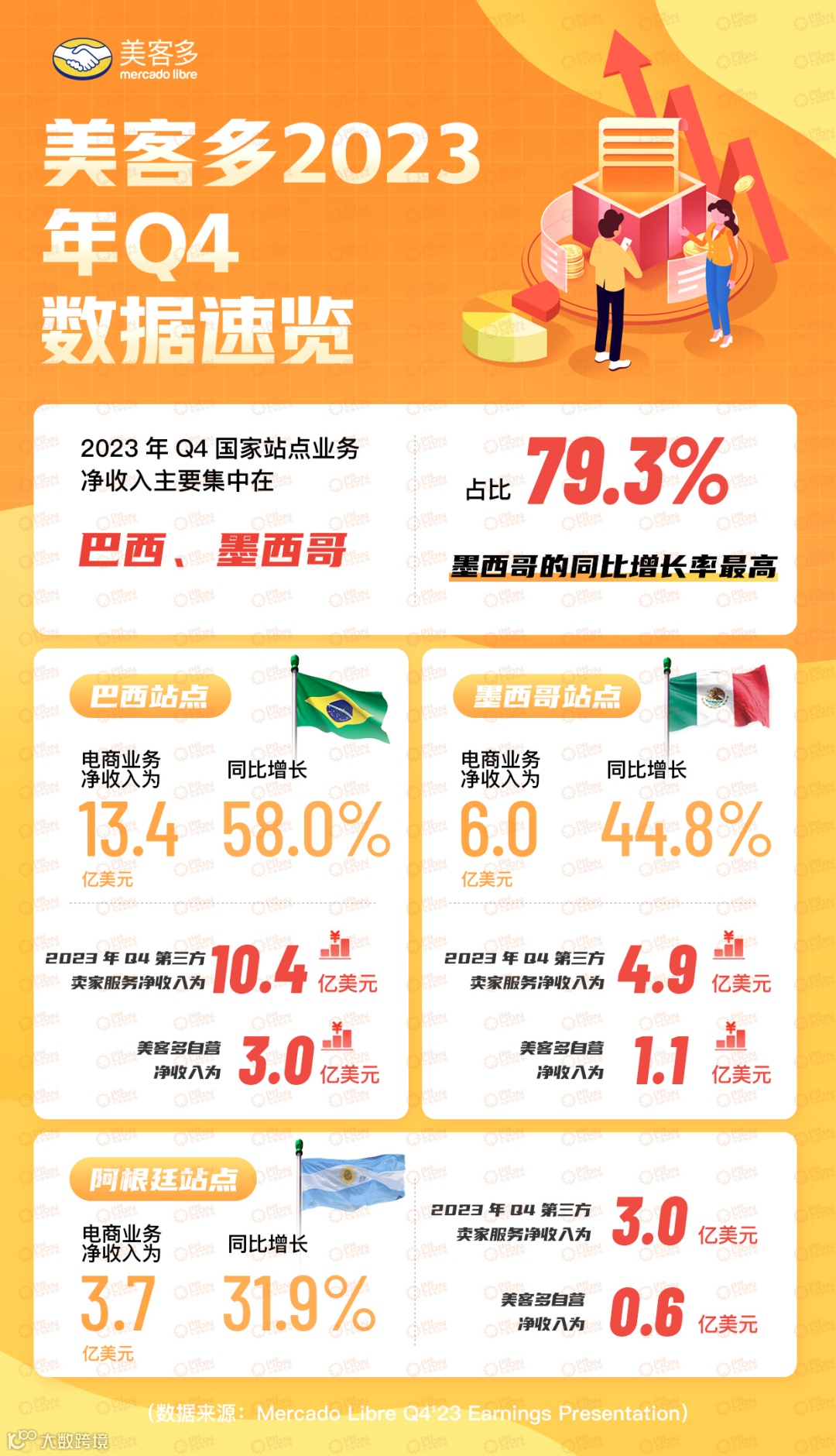 2024年2月22日,美客多公布了2023年第四季度的财务报告,美客多以“完美”结束了2023年,该报告再一次刷新了各项成绩纪录,为美客多生态系统所覆盖的上亿用户呈献了一份最具诚意的答卷。