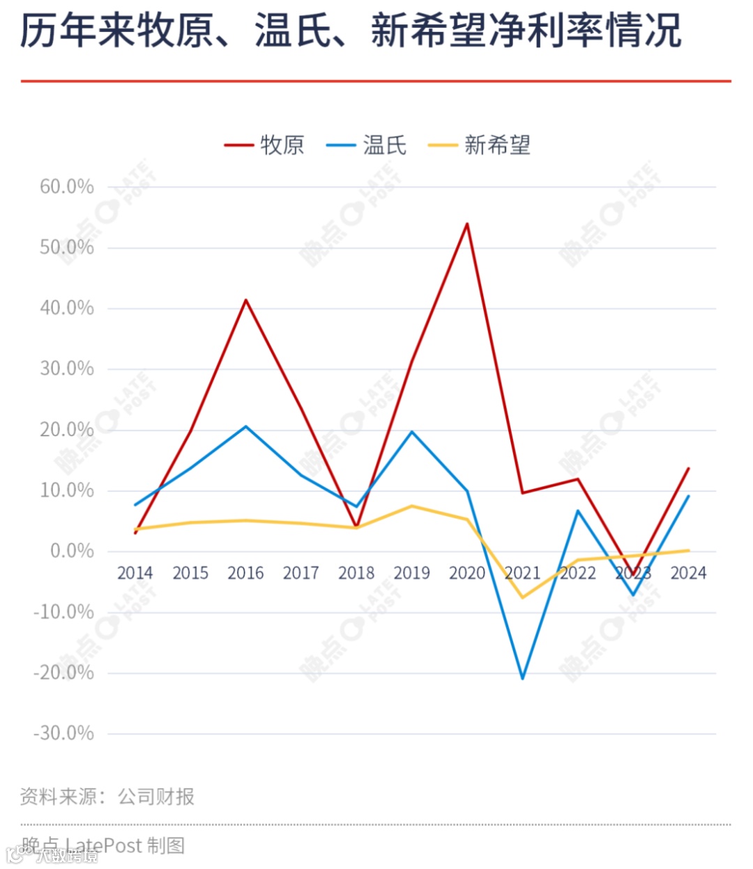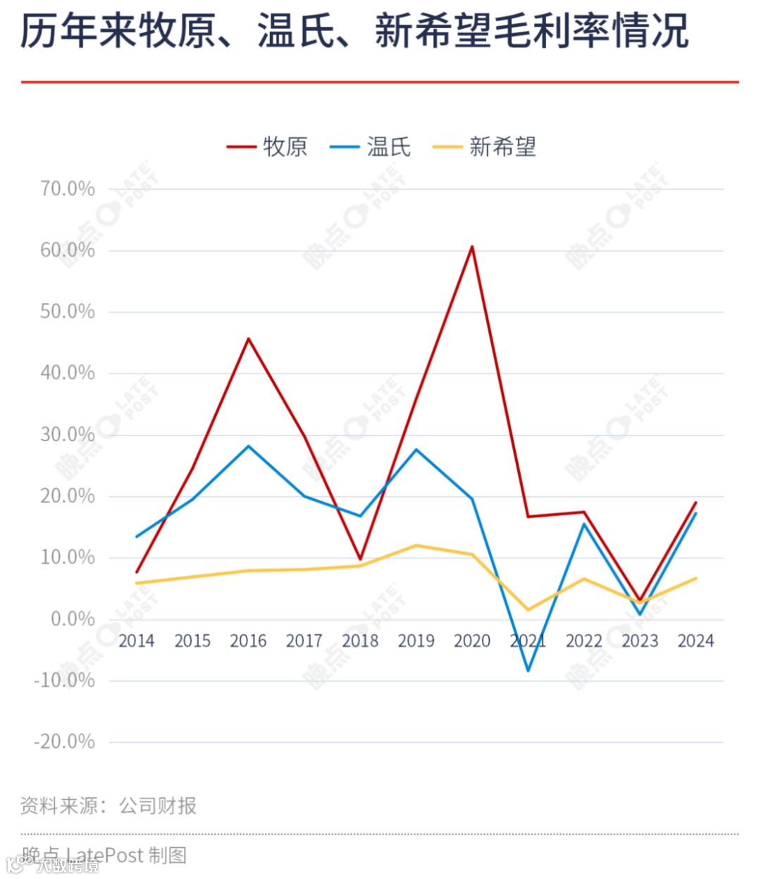 尽管模式不同,新希望与双胞胎集团凭借该路径在进入养猪行业短短数年内,迅速跻身全球生猪出栏量前三甲[k]。然而,从盈利能力看,牧原养猪业务毛利率显著高于温氏与新希望,后者因饲料业务占比高(毛利较低)进一步拉低整体盈利水平[k]。这一差距也体现在市值上:截至当前,牧原市值约2300亿元,温氏约1100亿元,新希望约400亿元[k]。