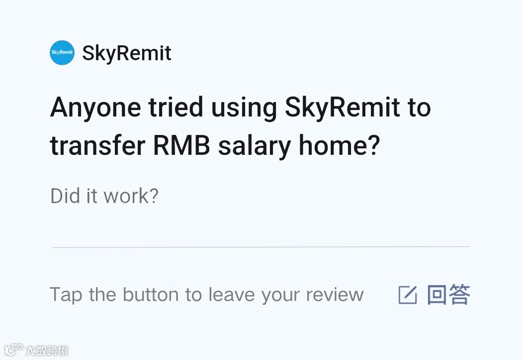 请留下你对 SkyRemit 的使用体验评价。