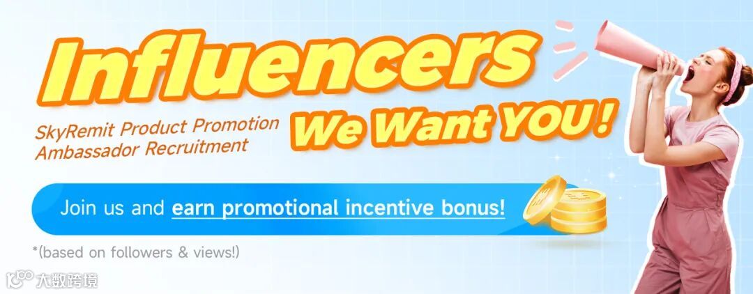 Join SkyRemit Influencer Promotion Program, share SkyRemit's trial bonus campaign or share your product experience, and earn promotional incentive bonus!