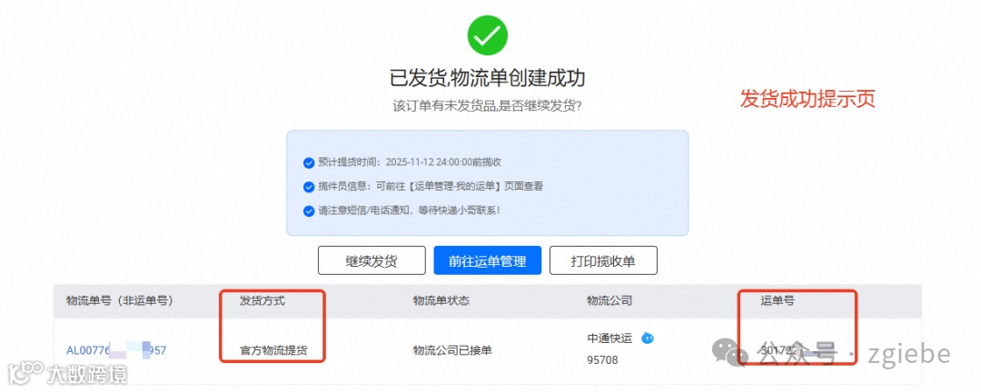 官方物流提货订单具备完整物流节点信息,可正常计入揽收率、运踪率等核心服务指标;买家自提订单因无运踪,将影响相关考核数据表现。