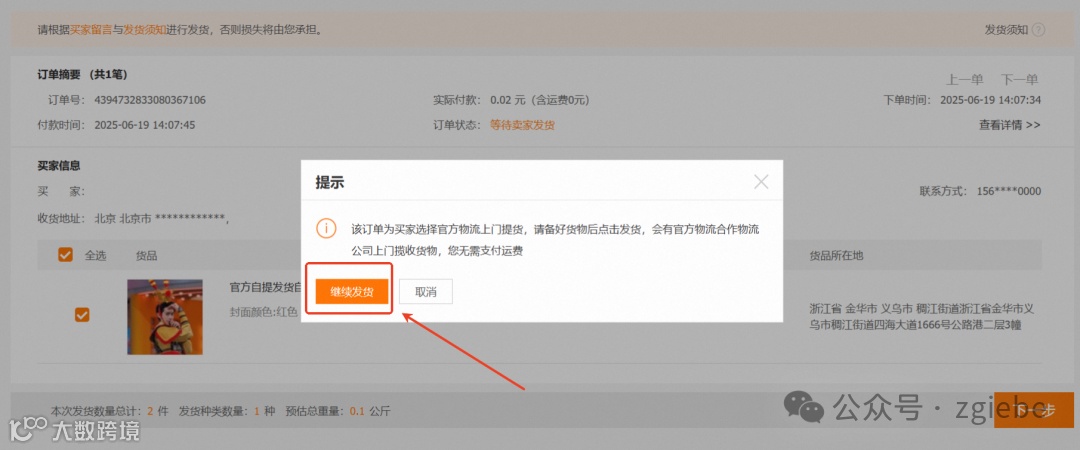 - 买家下单时勾选“官方物流提货”,并完成运费支付;