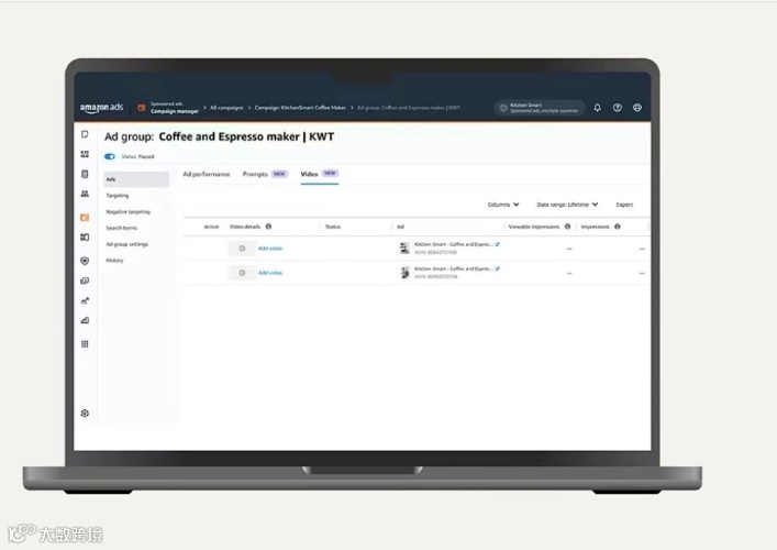 - 操作入口:亚马逊广告平台 → 广告活动管理器 → 商品推广广告活动 → 广告组 → 广告 → 视频上传。