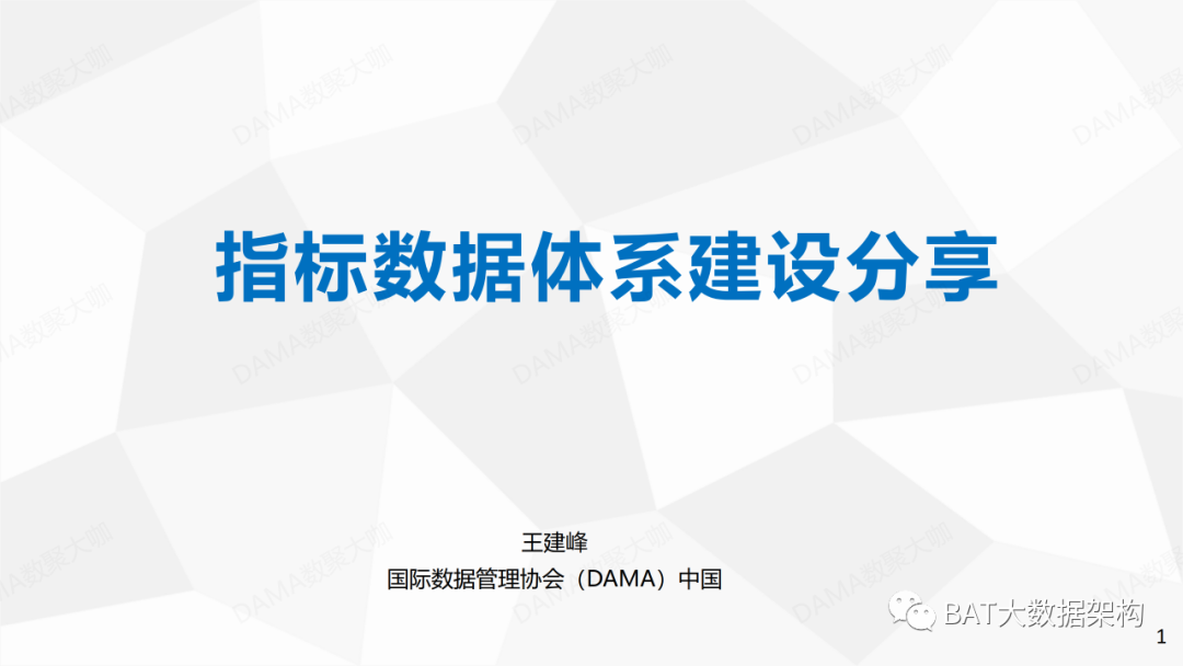 导读:DAMA中国会员,资深数据专家王建峰先生,为大家分享《数据治理项目之指标数据建设经验分享》。