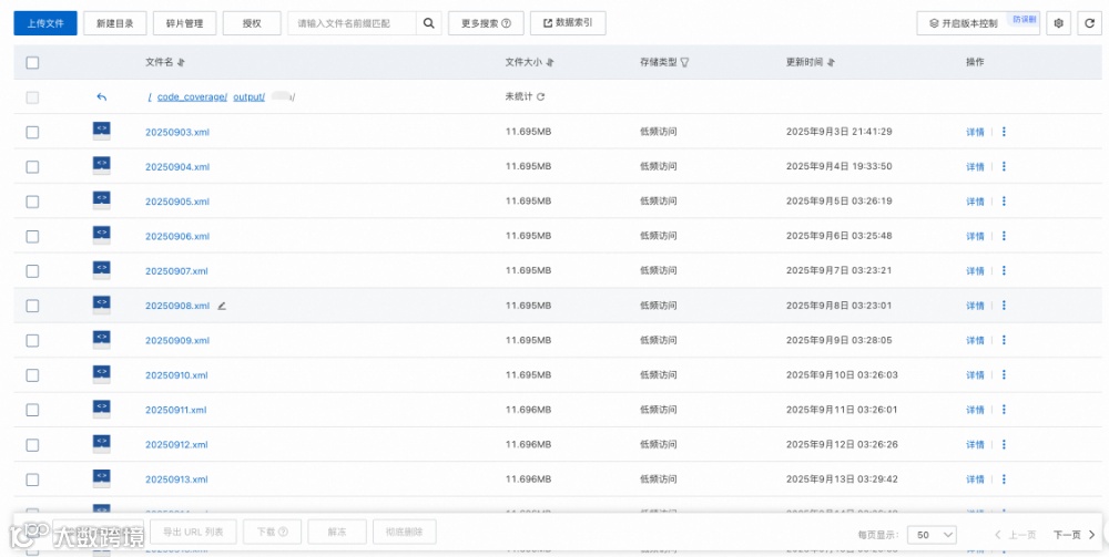 上述代码复用了JaCoCo的FileOutput类,JaCoCo也是依赖这个类的writeExecutionData()实现采集数据写磁盘。采集的数据dump后上传到oss,按照日期做了归档。dump的周期是每天凌晨,这样保证对dump数据做分析时代码是最新部署的。