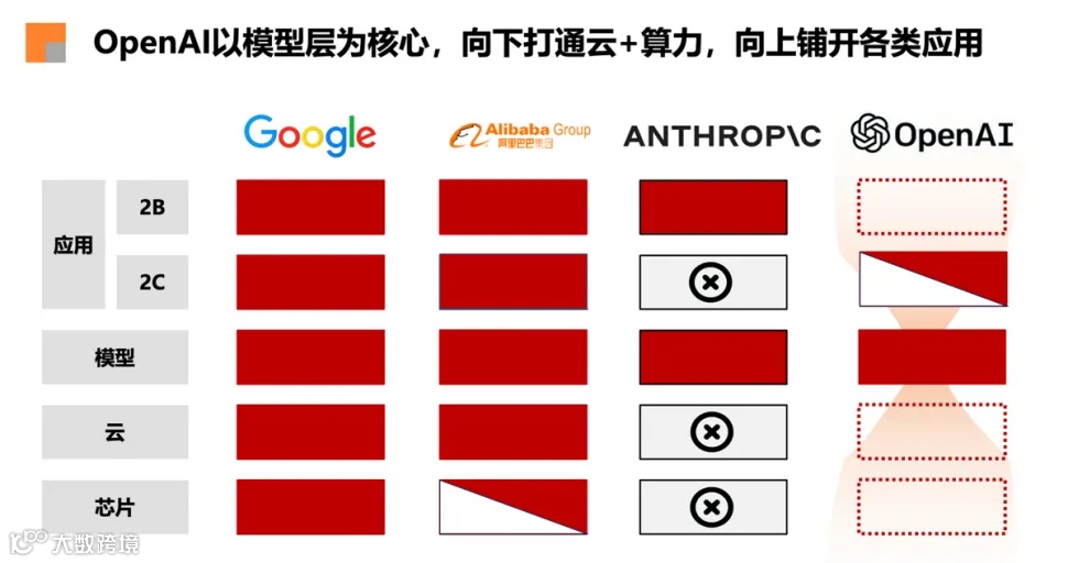 图1:OpenAI与其他竞对的生态位比较