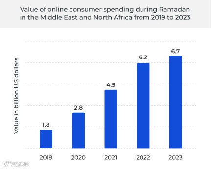 图源:Statista:2019-2023斋月期间中东和北非的消费者在线支出