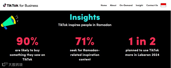 TikTok for Business最新调查显示,有二分之一的用户打算在2024斋月期间更多地使用TikTok,71%的用户将在TikTok上搜索斋月相关的灵感内容,90%的用户会购买在TikTok上看见的东西。