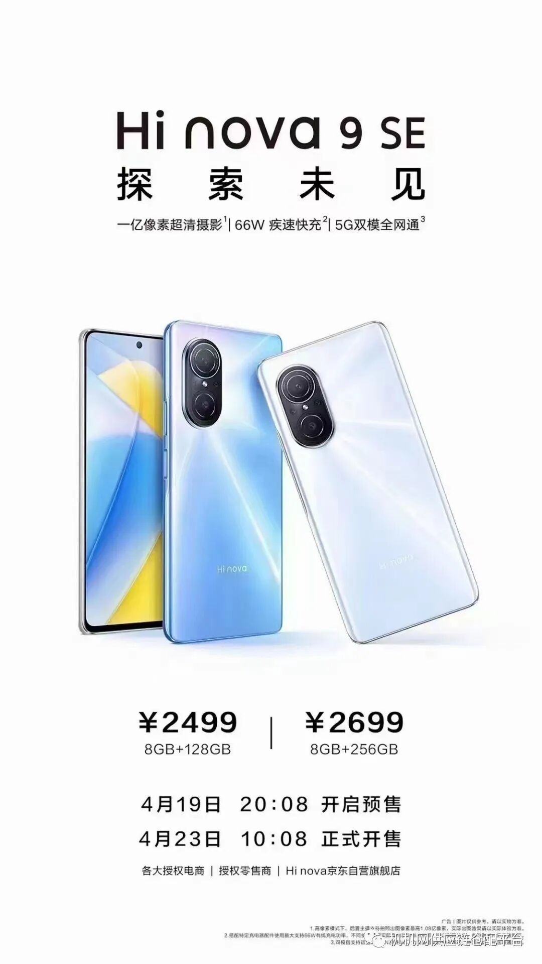 2022年4月23日,Hi nova新品发布即将。搭载一亿像素超清摄影系统,创新Vlog体验,66瓦极速快充,都给了年轻人群记录精彩生活的时尚新选择。