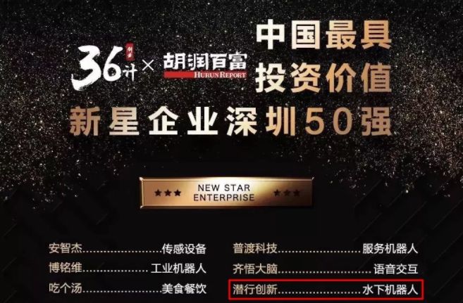 调研及评选团队经过长达一年的数据与实地调研,筛选出深圳地区的样本企业,从965家最终入选企业中评出50强。深圳潜行创新科技有限公司凭借其在消费级潜拍无人机领域取得的优异成果荣誉登榜。