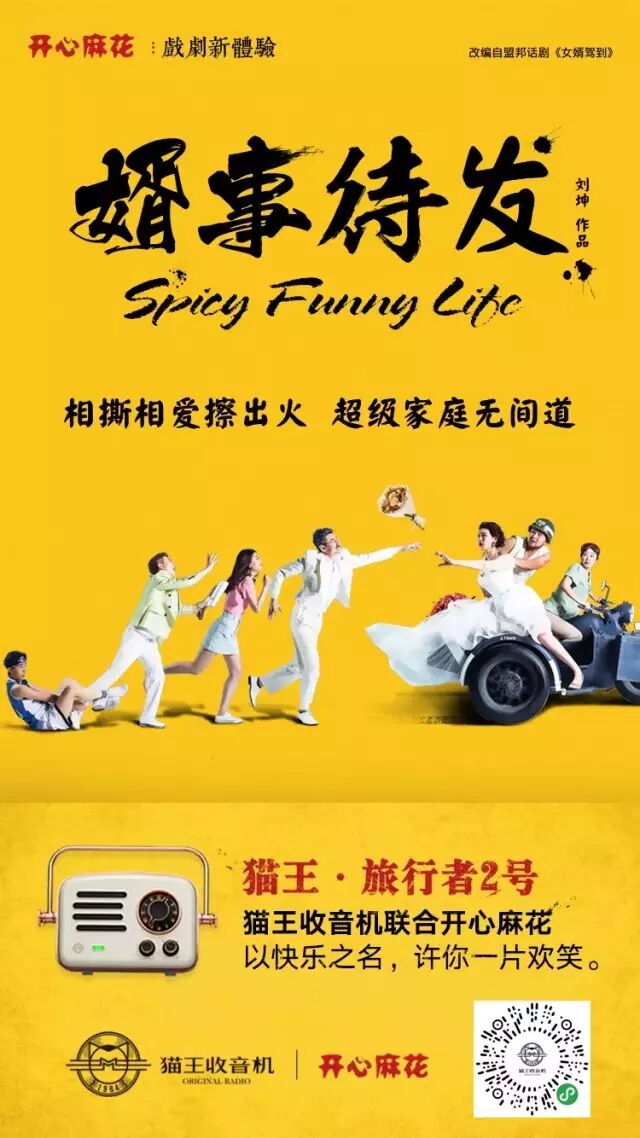 近期,猫王收音机与开心麻花达成合作,为以家庭版“无间道”为背景推出的《婿事待发》舞台剧冠名。