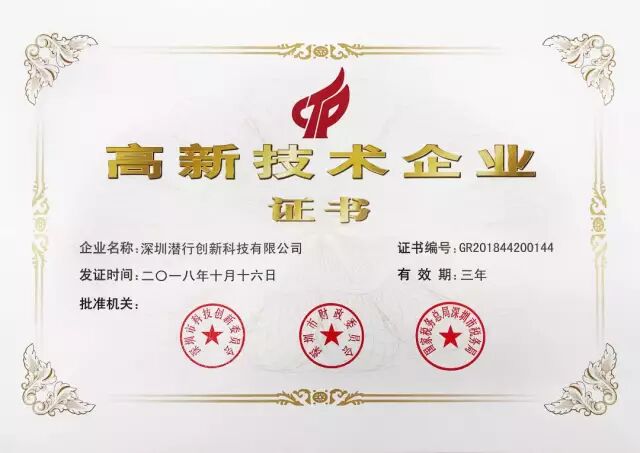 此外,潜行创新获得国家级高新技术企业认证,标志着潜行创新在自主研发创新、科技成果转化能力、综合竞争力等方面得到了国家的肯定与认可。截至目前,潜行创新已拥有30余项发明、PCT国际专利、实用新型和外观设计专利,而且数量还在不断持续上升,处于行业中绝对领先地位。
